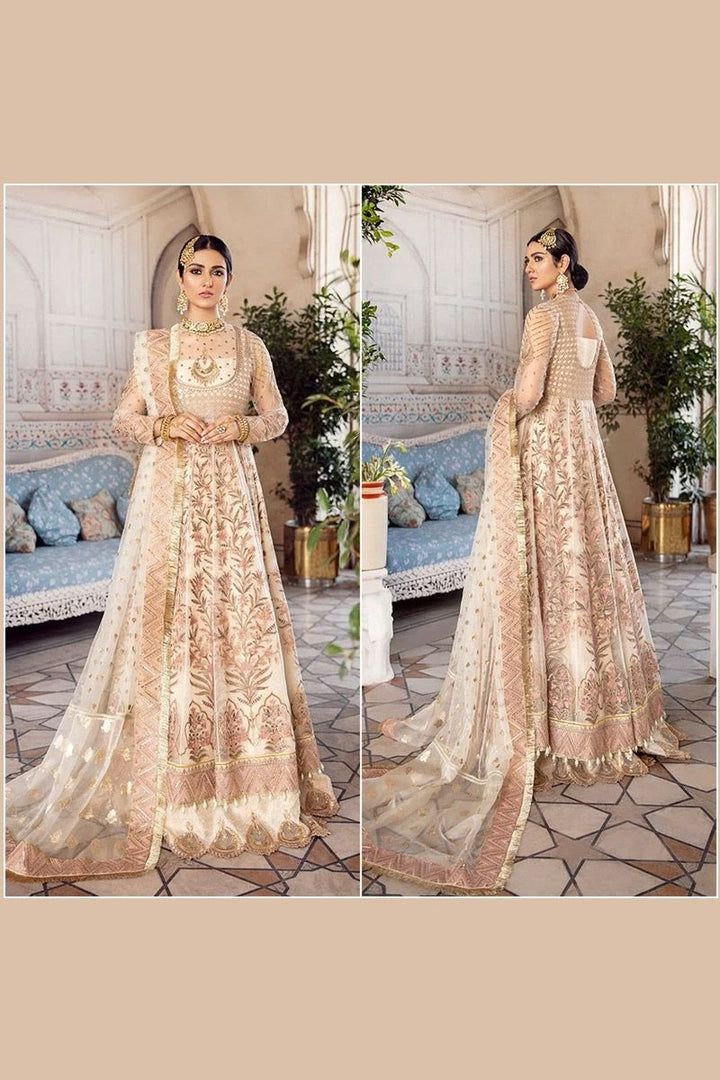 shehnai luxury beige jahan Ara Net Maxi long frock