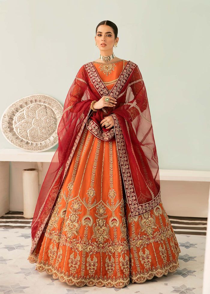 - Organza Embroidered Hand Embellished 6 Panel For Front