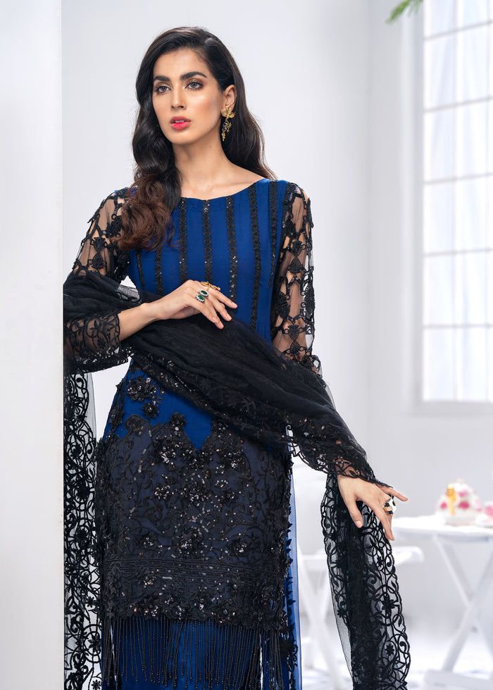 - Embroidered chiffon front one yard with 3D sequence flowers