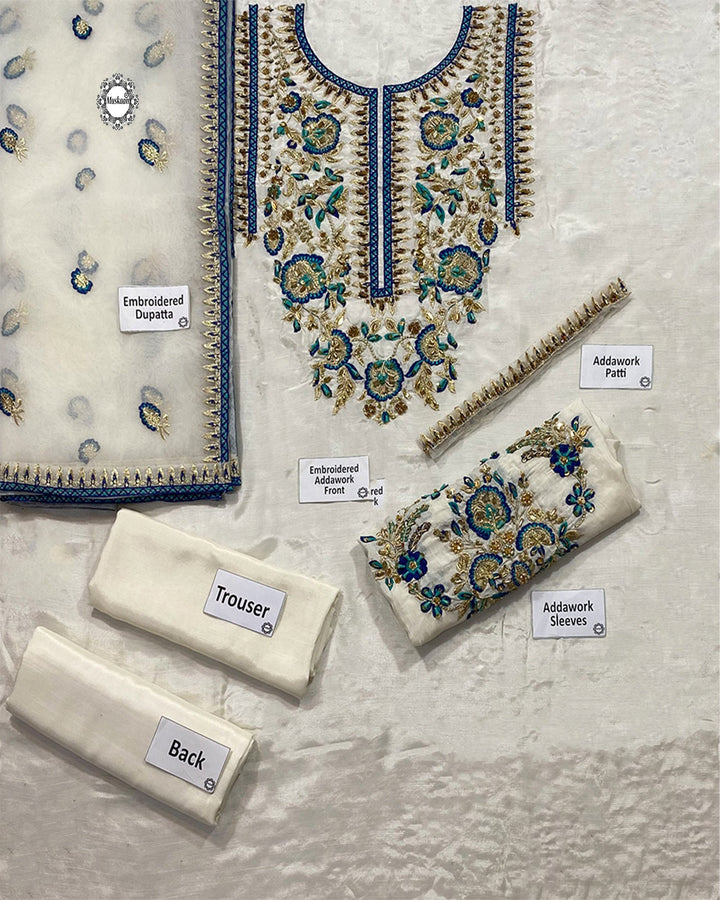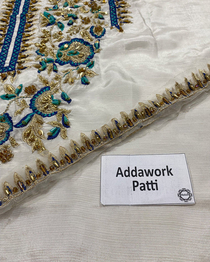 Alizay Saad Luxury Hand Embellished Formal Wedding Collection- IvoryDescription* Embroidered Addawork Hand Embellished FrontEmbroidered Addawork Hand Embellished SleevesEmbroidered Addawork Patti For Collar PattiEmbroidered Dupatta With 4 Sided Borders