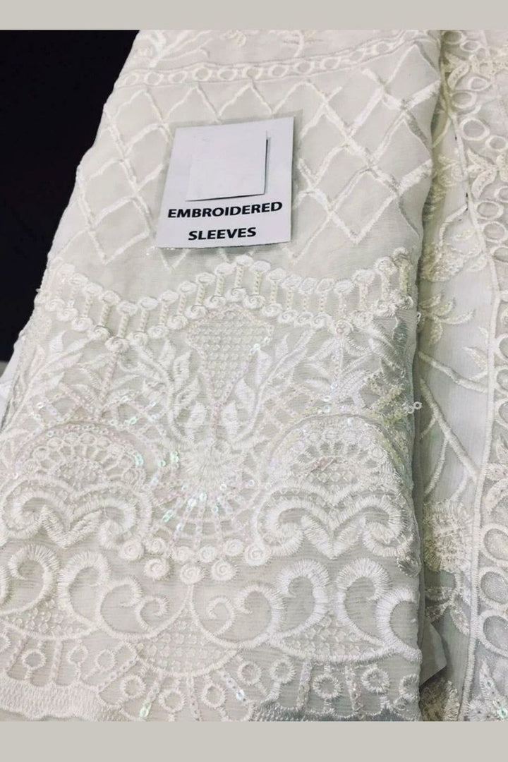 Sleeves chiffon full heavy embroidery & sequence and *width 36 inch *