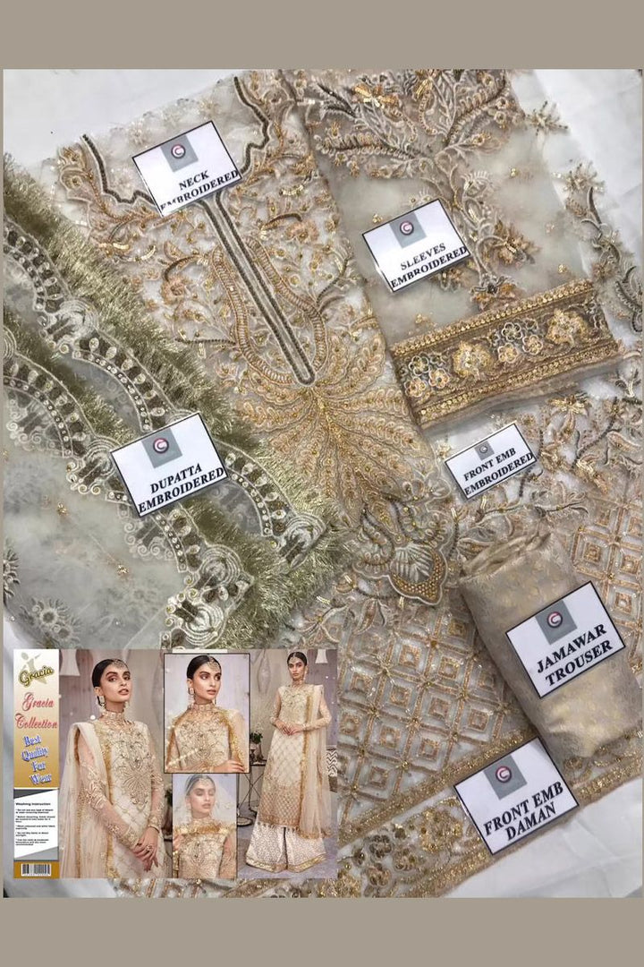 Front Fully Embroidered With Heavy Embroidered Neck Patch With Handwork???? And Sequins Work Heavy Embroidered Cutwork Daman Patch With Sequins Work