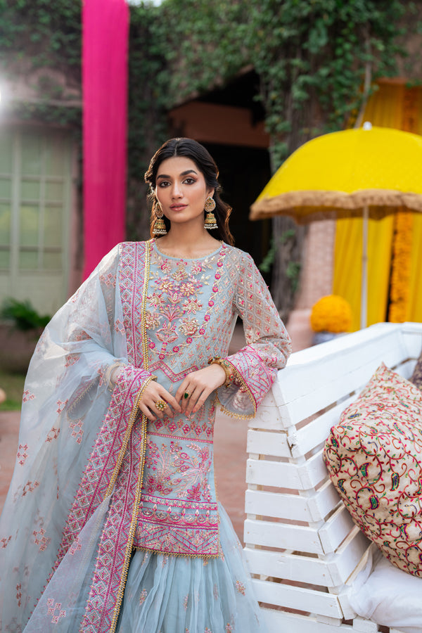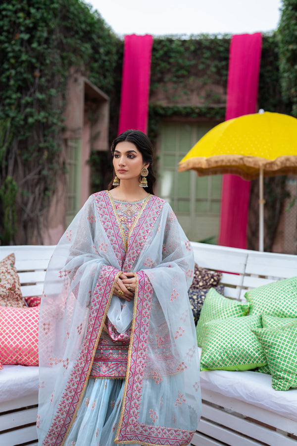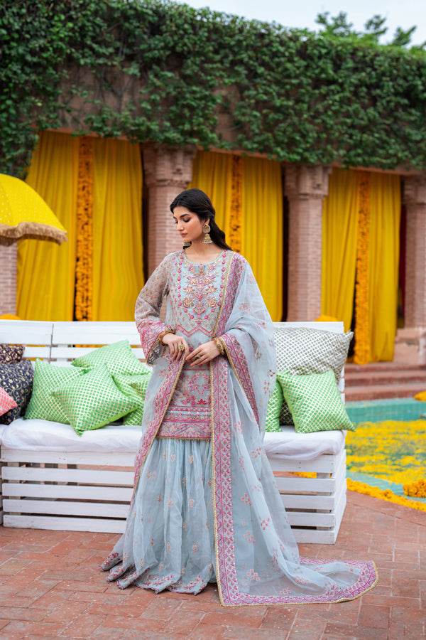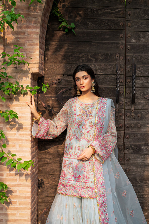 Organza Embroidered sharara 4.25 yards
