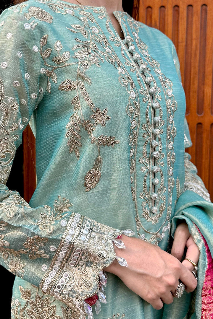 Embroidered Sleeves, Front, Back Daman Patti (Tissue) 1.80 Yards