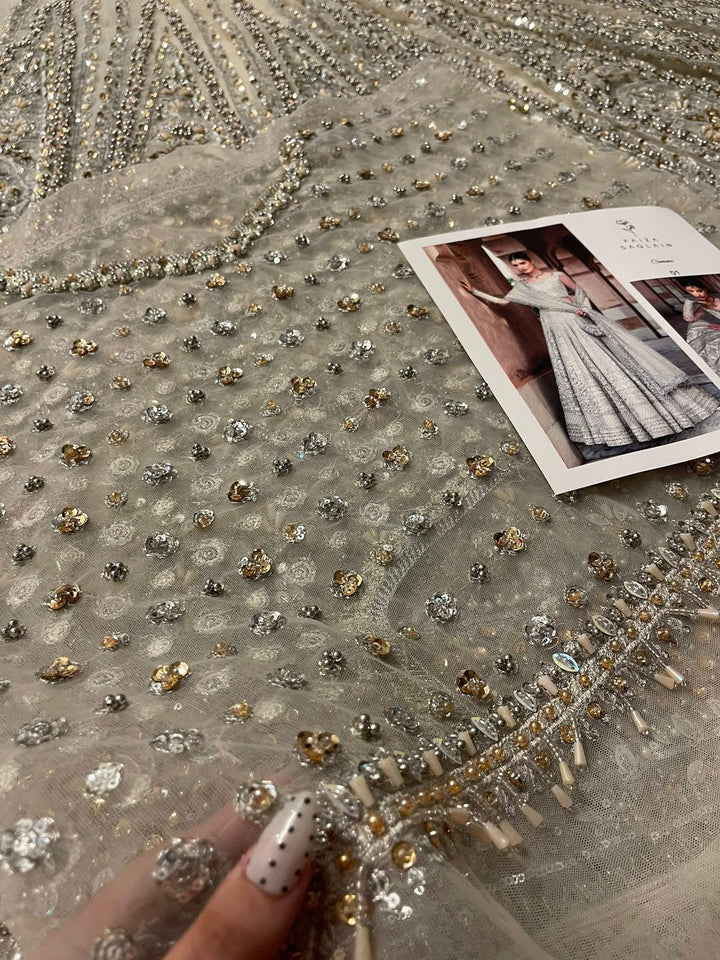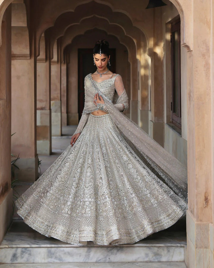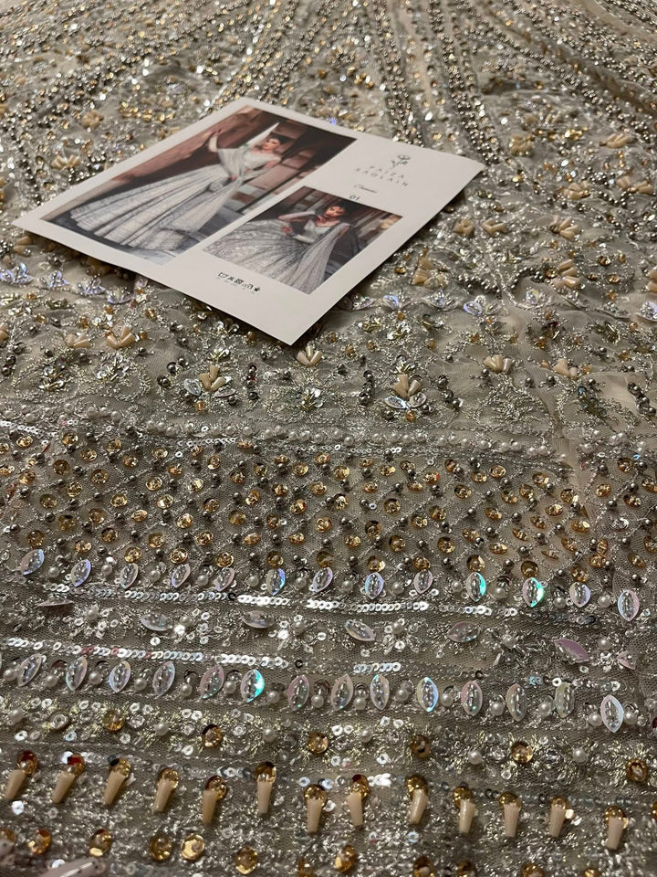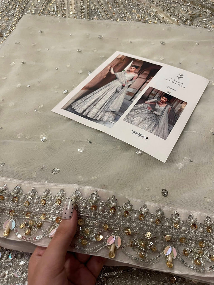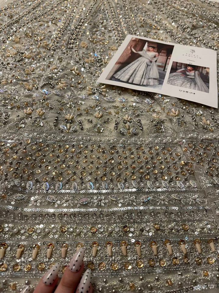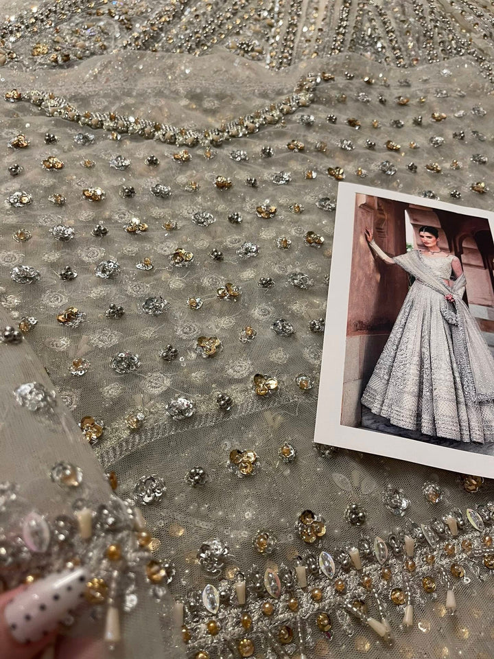 Embellished Net DupattaDescription: Fusing immaculate craft with a classic silhouette, Cammi radiates grandeur. Cut from white net, the lehnga, choli and dupatta feature lavishly adorned resham, crystal and tilla motifs that sparkle with each step, making it a staple in your festive wardrobe.