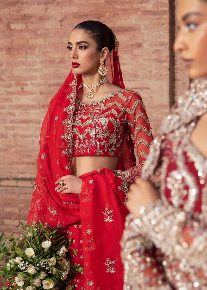 Turn heads with this vibrant bridal lehenga by Akbar Aslam. This stunning ensemble features exquisite embroidery that adorns both the blouse and the flowing skirt, showcasing a captivating blend of traditional craftsmanship and contemporary design. The intricate patterns and delicate embellishments create a rich tapestry of texture and detail, while the full sleeves add a touch of elegance. Paired with a matching dupatta, this lehenga is perfect for the bride who wishes to make a bold statement with a timeless yet modern look. Ideal for a grand wedding celebration, this outfit promises to leave a lasting impression.