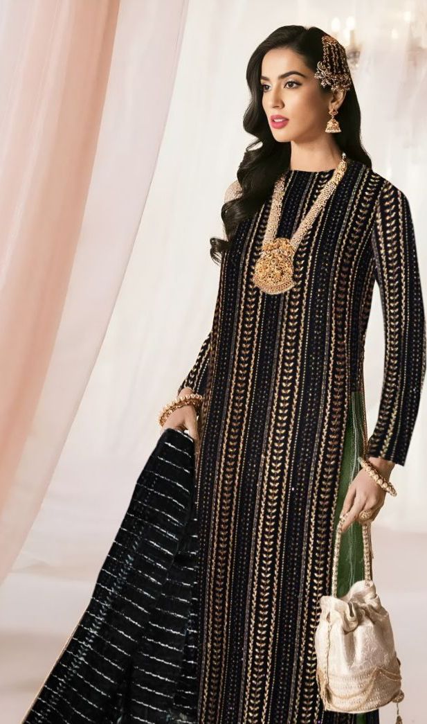 - A wonderful expression of class, ‘Ecstasy’ is definitely a showstopper for this festive season. A sequined long shirt is enriched with Gorgeous detailing & pearl chain hangings to depict the NS signature style. Paired with chic Khimkhaab pants and a flamboyant organza dupatta perfect for a surreal look!