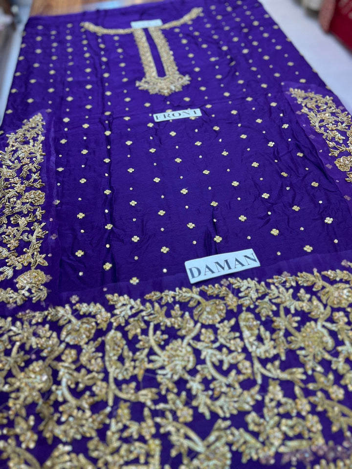 AJ-03?from?Haris Shakeel?is a luxurious and sophisticated addition to your wardrobe, offering a perfect blend of modern design and timeless elegance. This carefully crafted ensemble features intricate detailing and premium fabric, making it ideal for special occasions. The stunning embellishments and flawless stitching showcase the designer?s expertise, ensuring you stand out with unparalleled grace and style.
