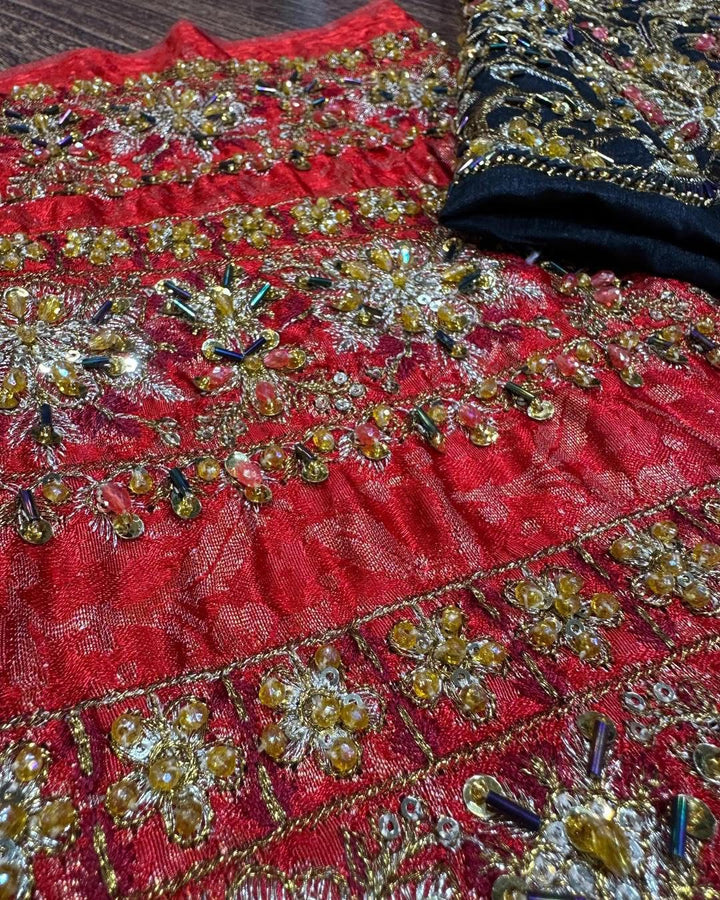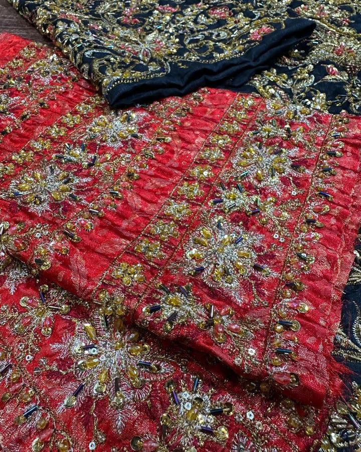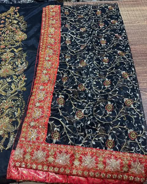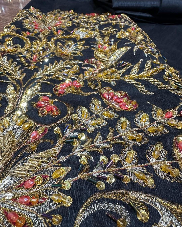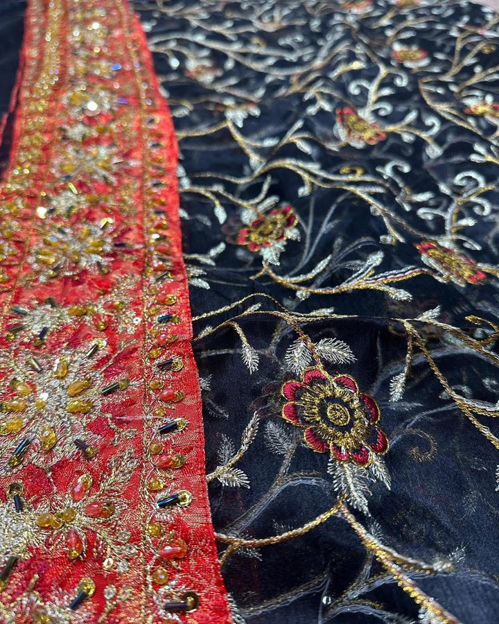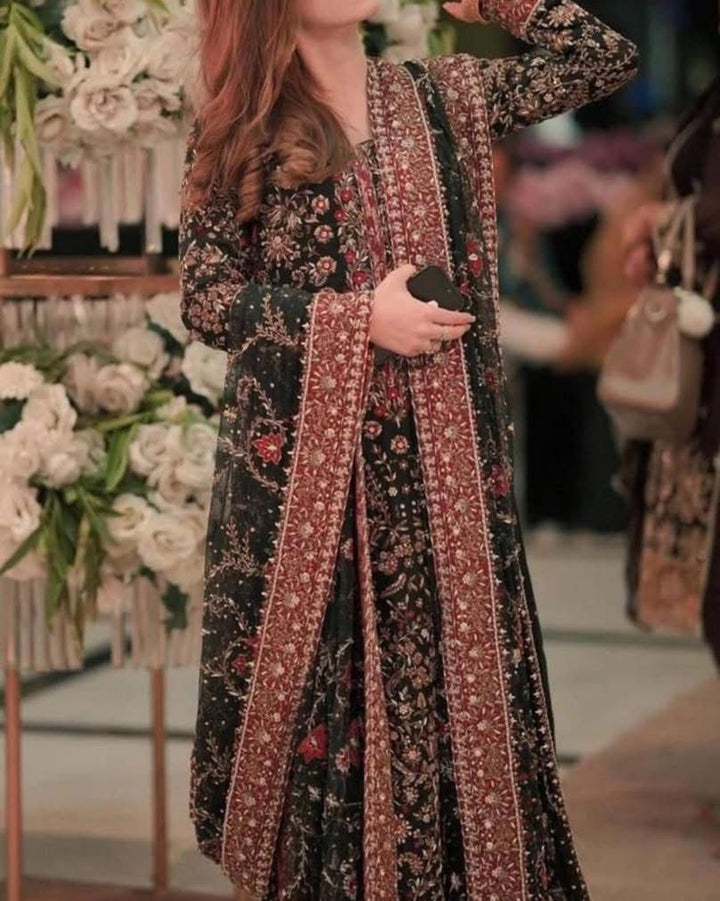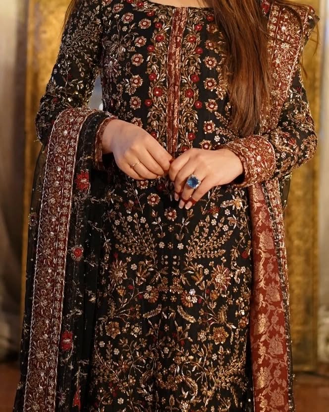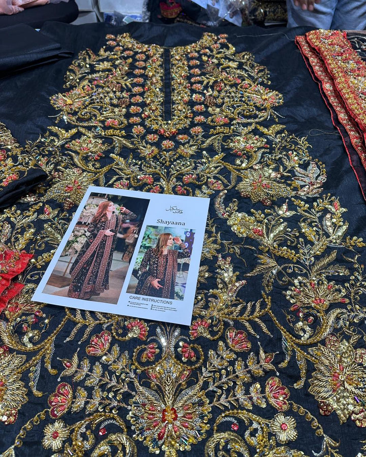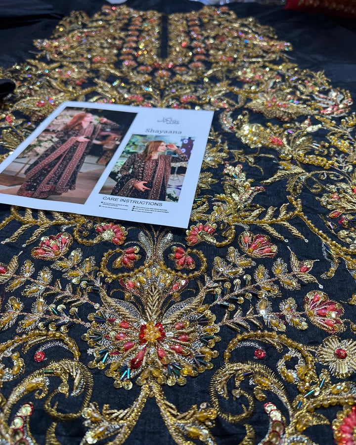 Step into timeless elegance with the Haris Shakeel Black Floral Embroidered Formal Dress. This breathtaking ensemble features a richly embroidered black base adorned with intricate floral patterns in vibrant hues. The outfit is paired with a beautifully designed matching dupatta, bordered with fine embroidery that enhances its luxurious appeal. Perfect for weddings, evening soir?es, or festive gatherings, this masterpiece embodies a seamless blend of tradition and contemporary sophistication. Crafted to perfection, Haris Shakeel's design ensures you stand out with grace and charm.