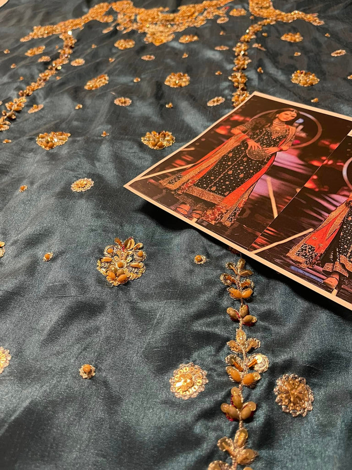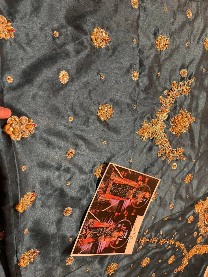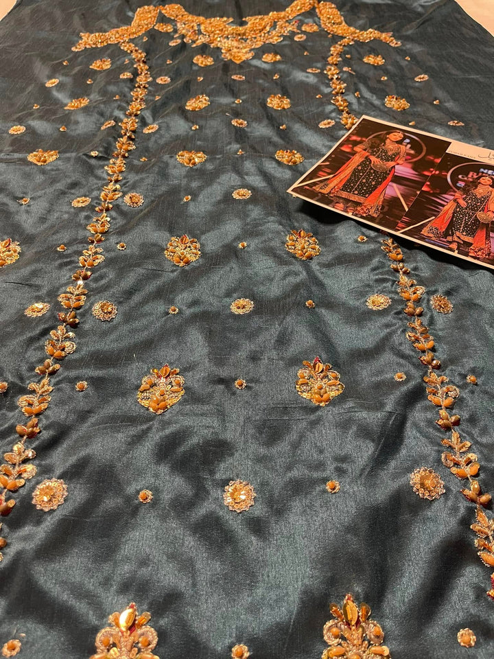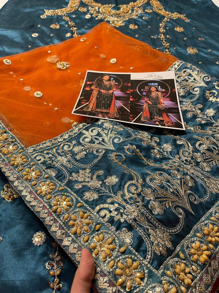 Step into timeless elegance with the Haris Shakeel Zubab Rana Embroidered Formal Dress. This breathtaking ensemble features a richly embroidered black base adorned with intricate floral patterns in vibrant hues. The outfit is paired with a beautifully designed matching dupatta, bordered with fine embroidery that enhances its luxurious appeal. Perfect for weddings, evening soir?es, or festive gatherings, this masterpiece embodies a seamless blend of tradition and contemporary sophistication. Crafted to perfection, Haris Shakeel's design ensures you stand out with grace and charm.