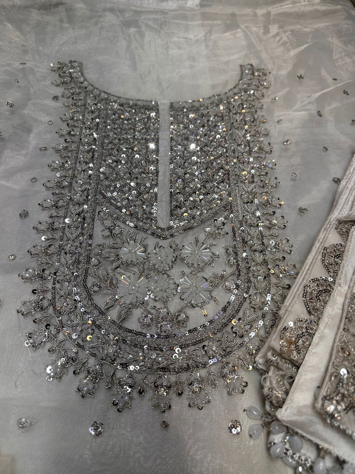 A serene ode to femininity, this soft sage ensemble is delicately worked with intricate embellishments and paired with ethereal layers that flow with grace. The refined detailing and airy silhouette create an effortless harmony of elegance and charm, making it perfect for timeless celebrations.