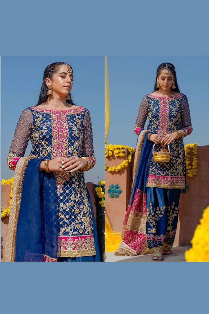 Imrozia Pakistani Wedding dresses Indian dress Blue salwar kameez chiffon clothes