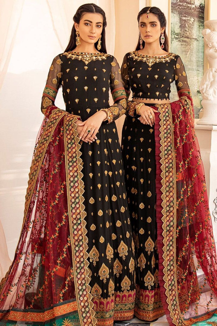 Chiffon sequence embroidered front body with heavy work stones & punching Moti attached same as original