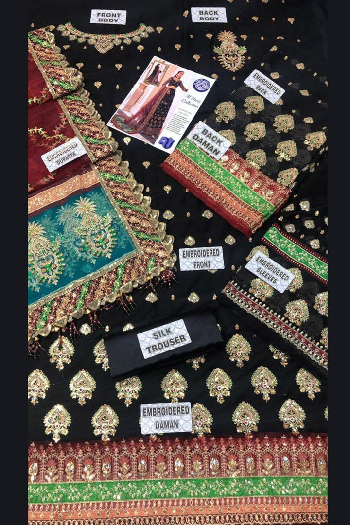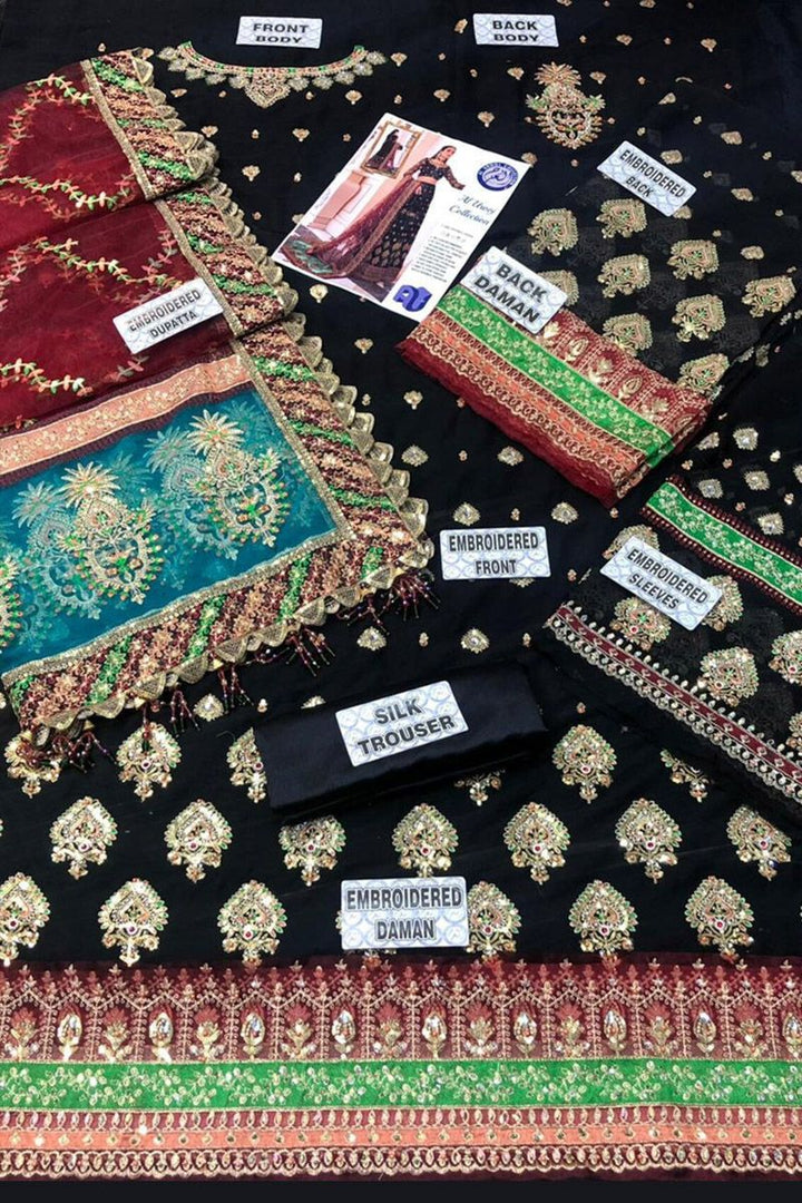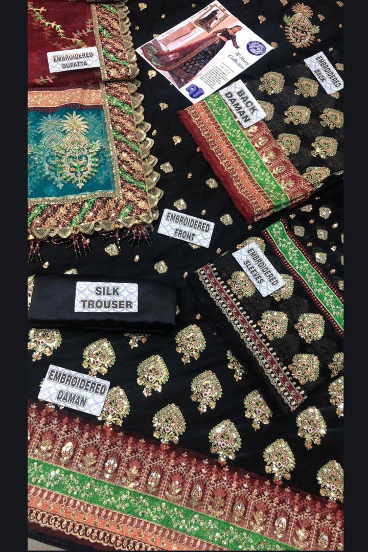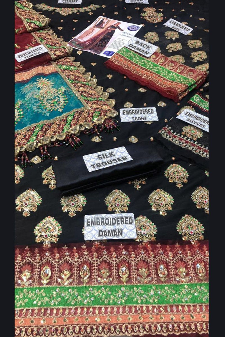 Chiffon Heavy sequence Embroidery front with heavy work stones & punching Moti attached