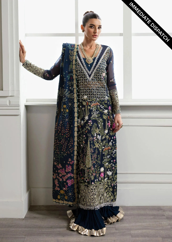 Pieces included: Long Shirt, Undershirt. Crushed Sharara. Printed and Handworked Chadar