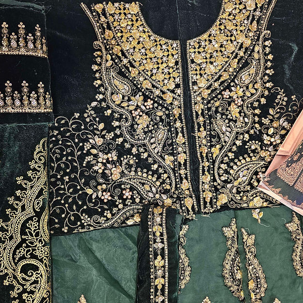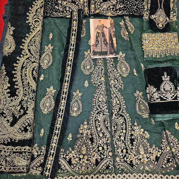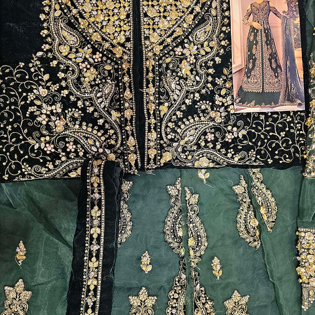 Embroidered Velvet Ghera & Back Panel Patti