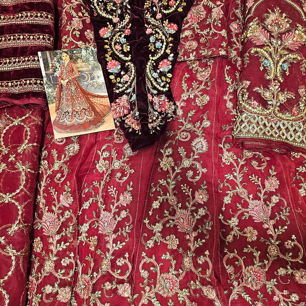 Embroidered organza front With Luxury Hand Embellishment