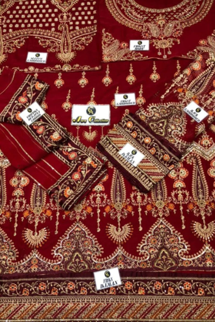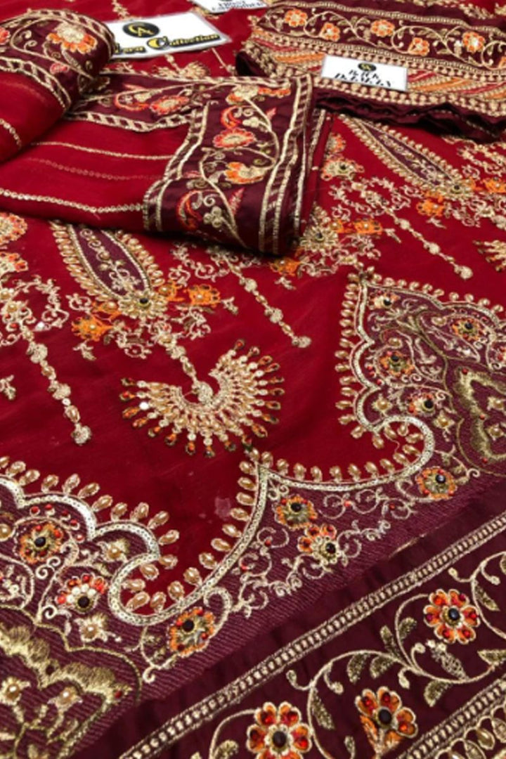 Front chiffon heavy embroidery with sequence work & stone hand work