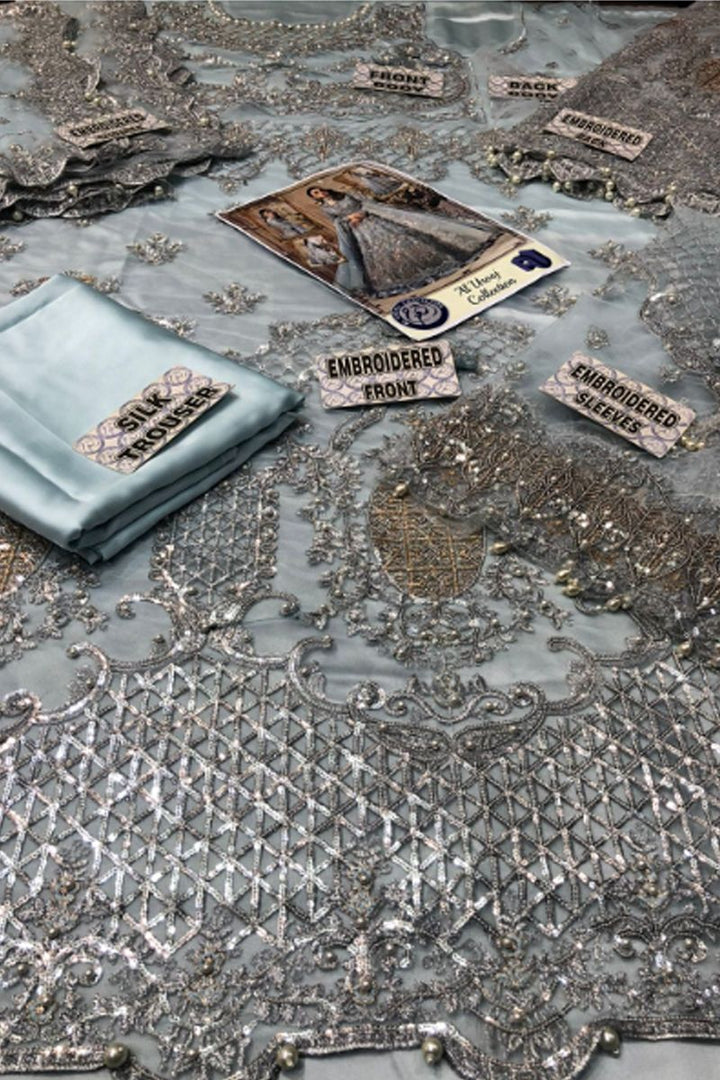 Front fully embroidery having Sequence work on it {as original pattern} with punching Moti 3D flowerss & peals atteched