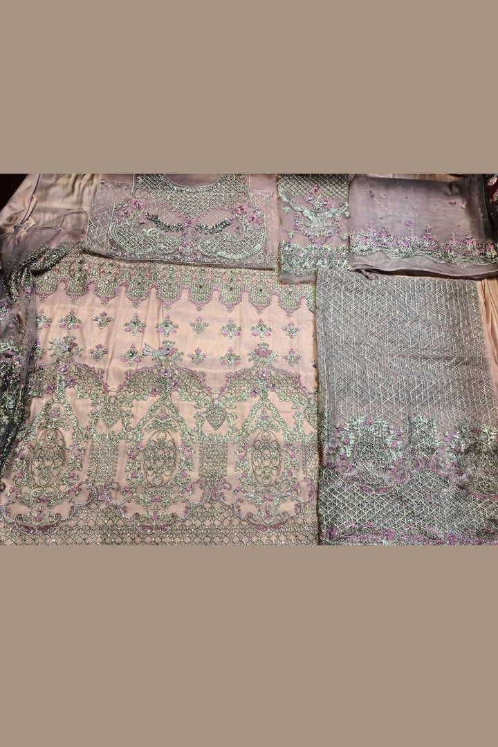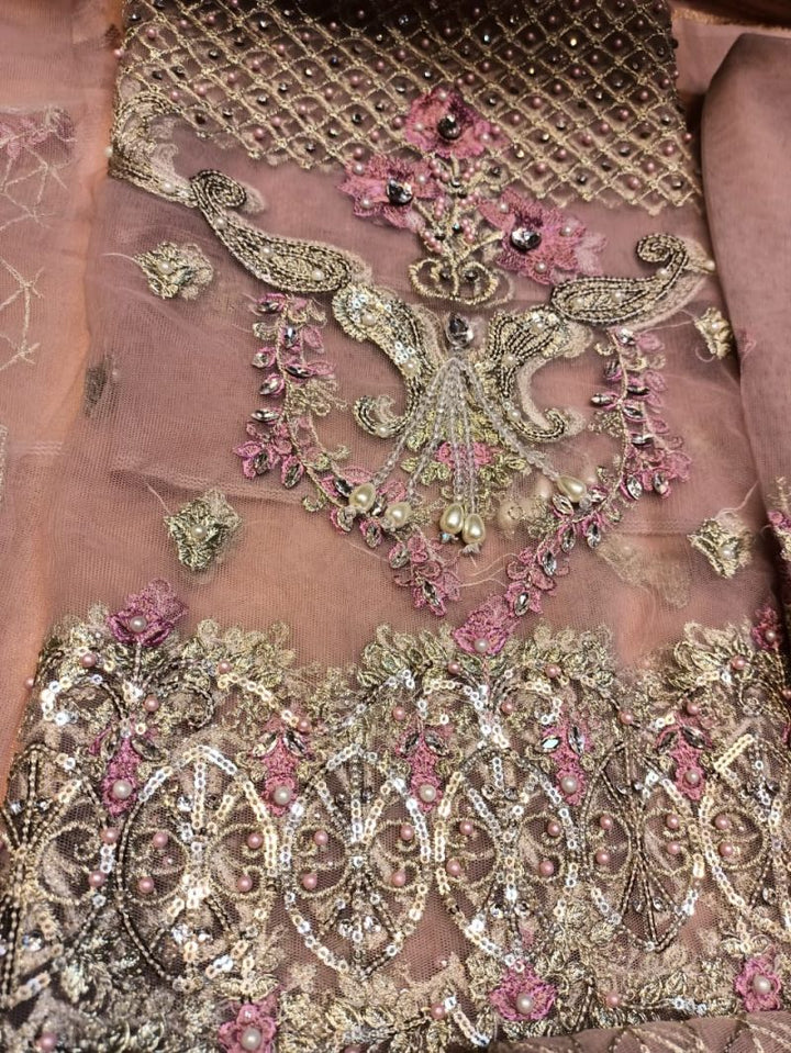 Heavy sequence net embroidery duppata with punching Moti & peals attached