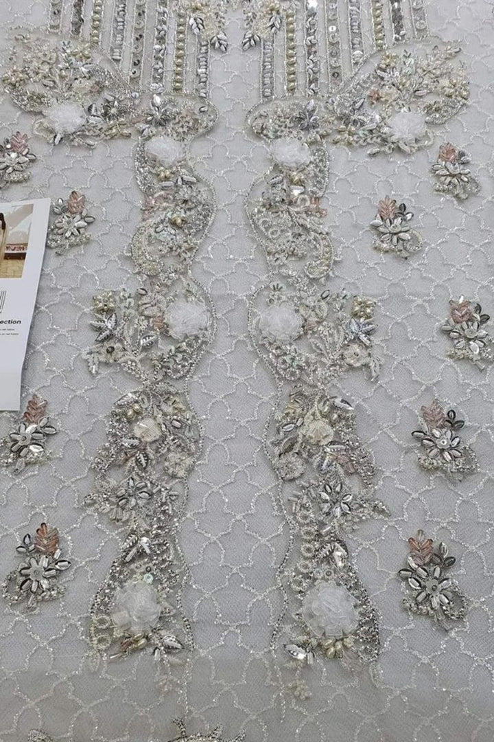3D hand embellished Embroidered sequin sleeve on net fabric
