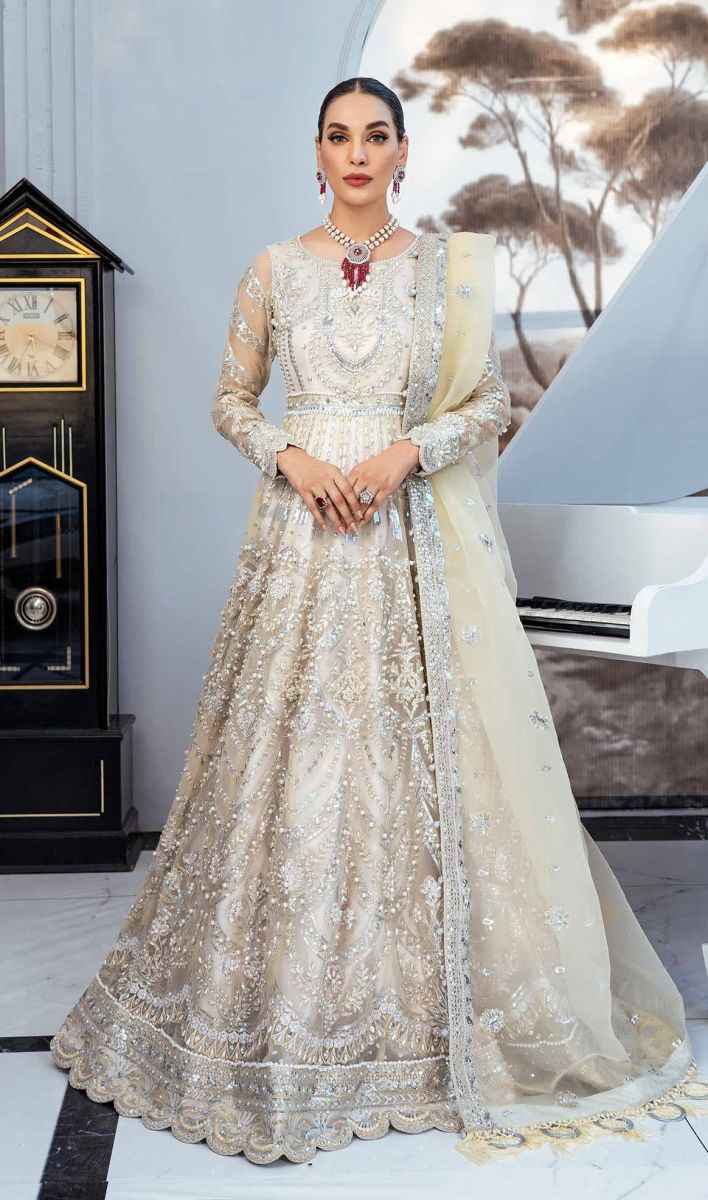 Embroidered handmade Organza front kali sleeves & bodice