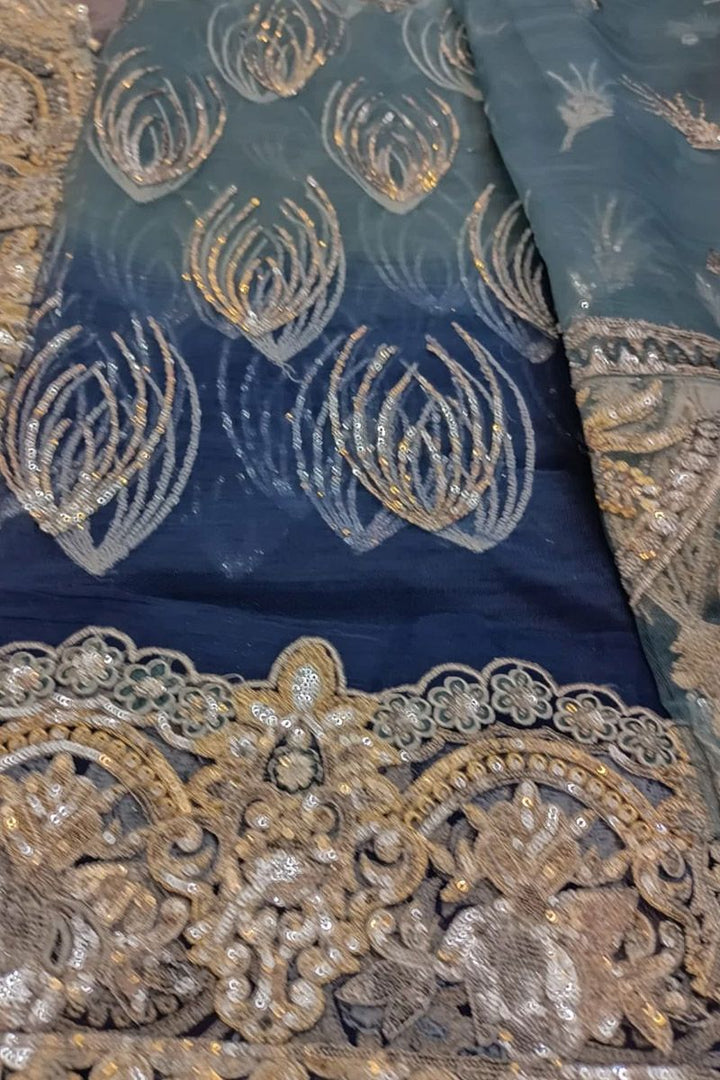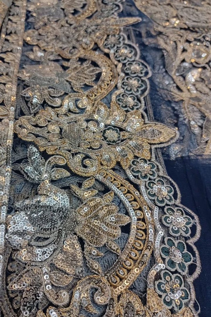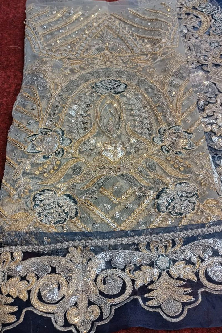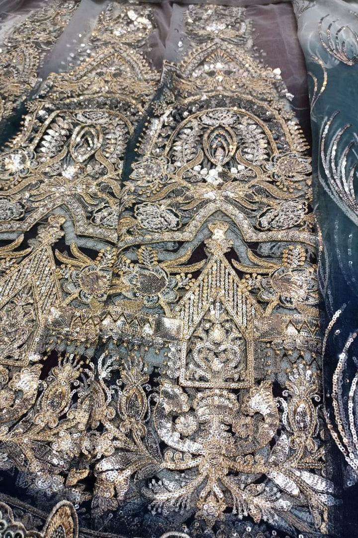 SLEEVES : Bareeze Net With Embroidery Of Sequence,Tilla, Resham & Thread. Wide Embroidery Patch For Sleeves.
