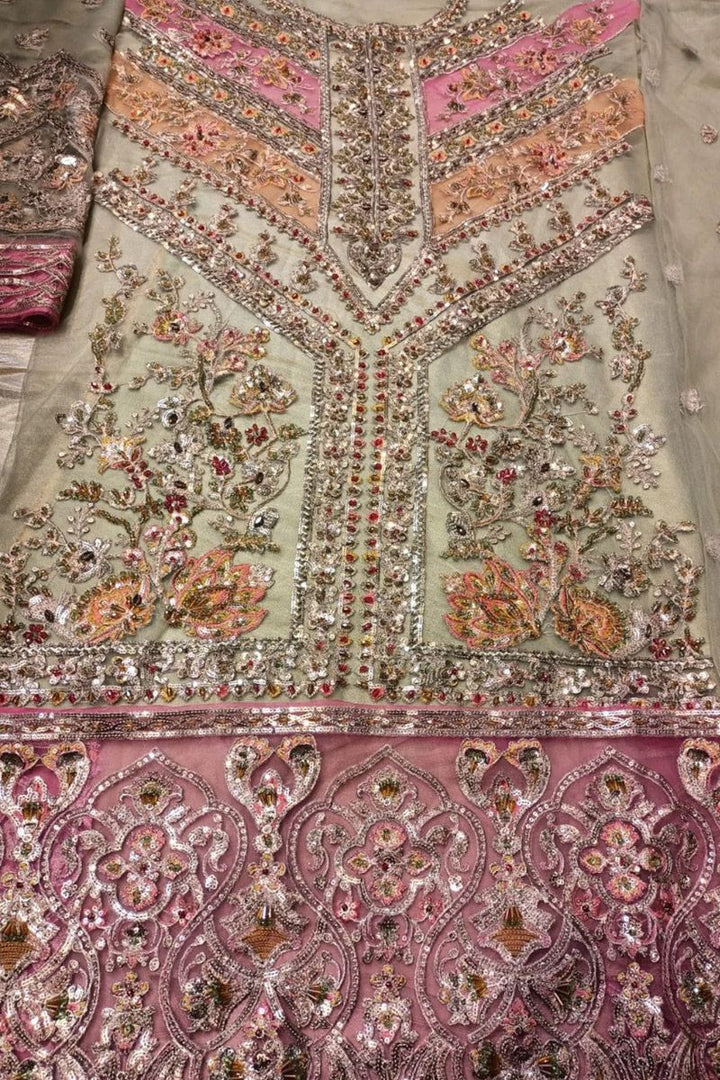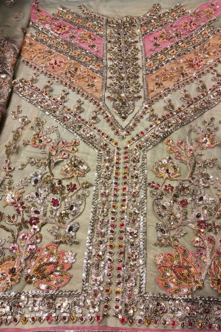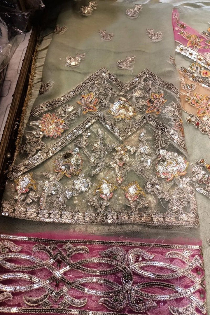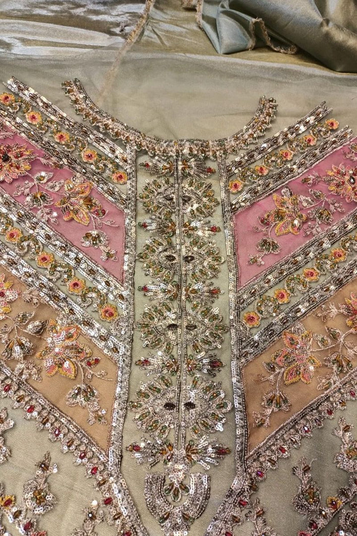 EMBROIDERED HANDMADE ORGANZA FRONT DAMAN PATCH & SLEEVES PATI