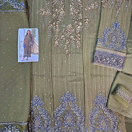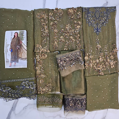Embroidered Organza Sleeves + Daman Patti With Hand Embellishment