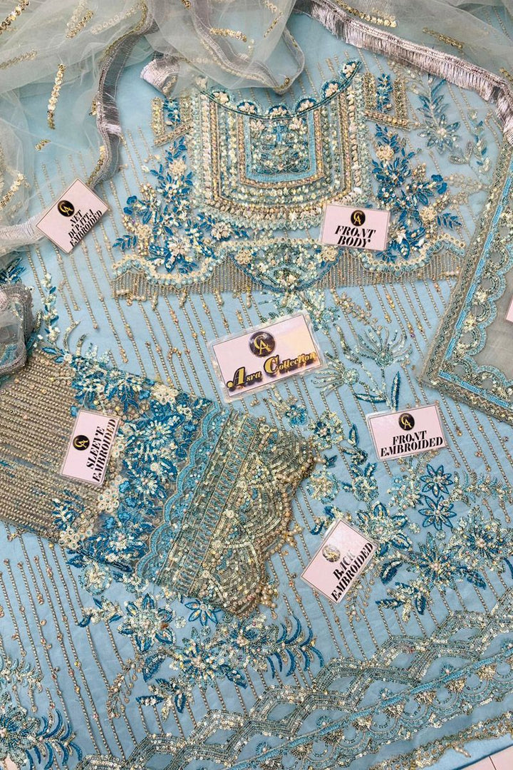 Heavy sequence Embroidered front body with heavy Adda work punching Moti & peals attached