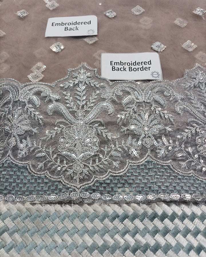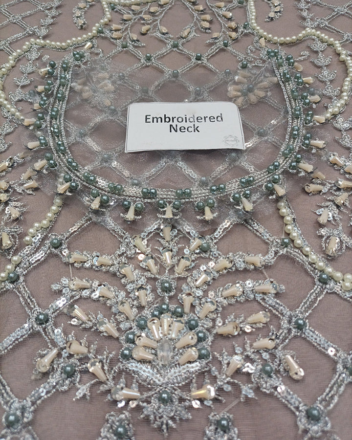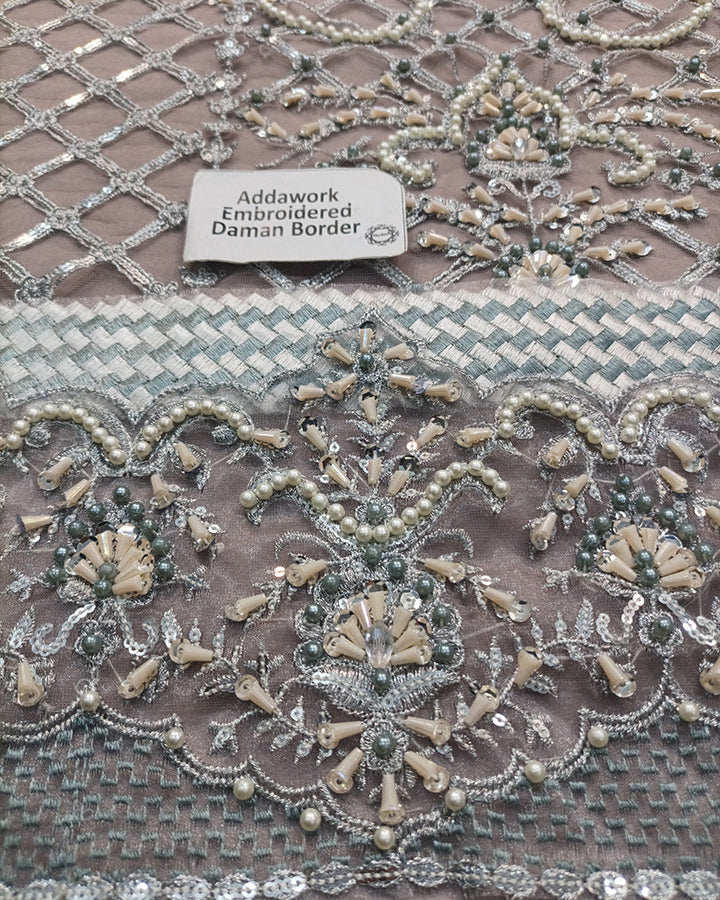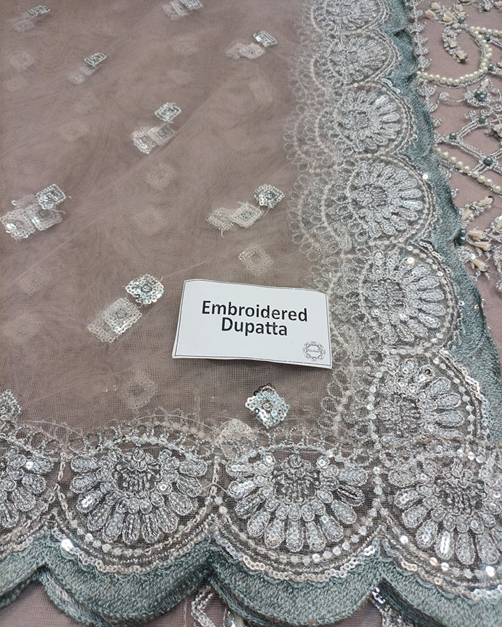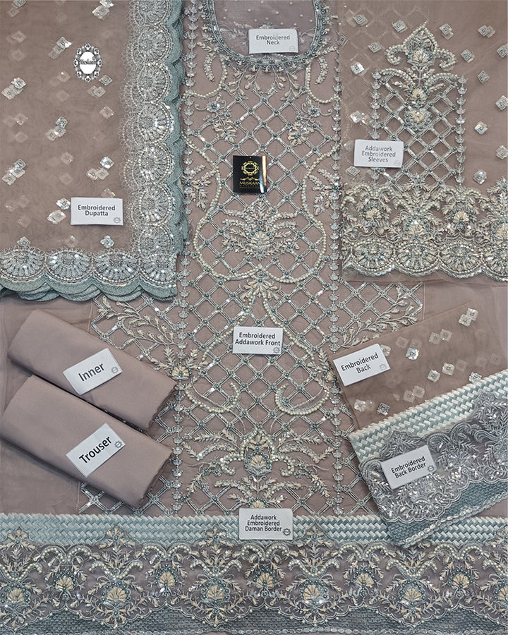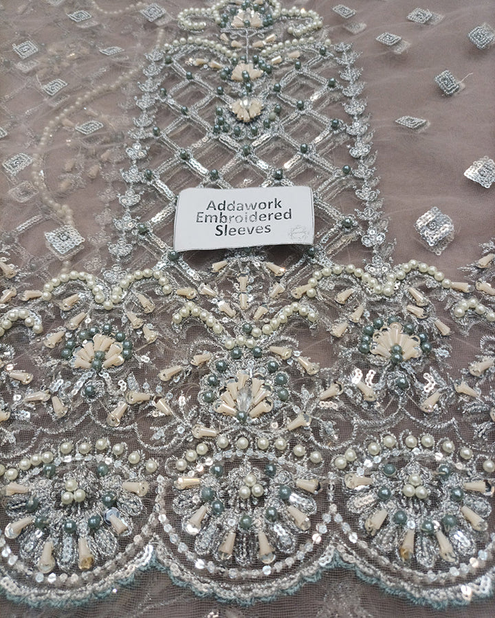 Mushq Luxurious Hand Embellished Addawork Formal Wedding Collection- Stone GreyFabric DetailsShirt: NetLength Upto 46 InchesWidth Upto 32 InchesDupatta: Net 2.7 yardsTrouser: Soft Crepe 2.5 yardsInner: Dull Silk 2.5 yardsDescriptionEmbroidered Hand Embellished Addawork FrontEmbroidered Hand Embellished Addawork Daman BorderEmbroidered Hand Embellished Addawork SleevesEmbroidered BackEmbroidered Back Borders* Embroidered Dupatta With 4 Sided Border And Cutwork