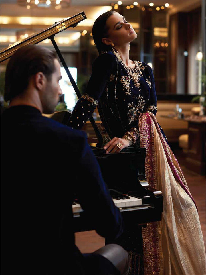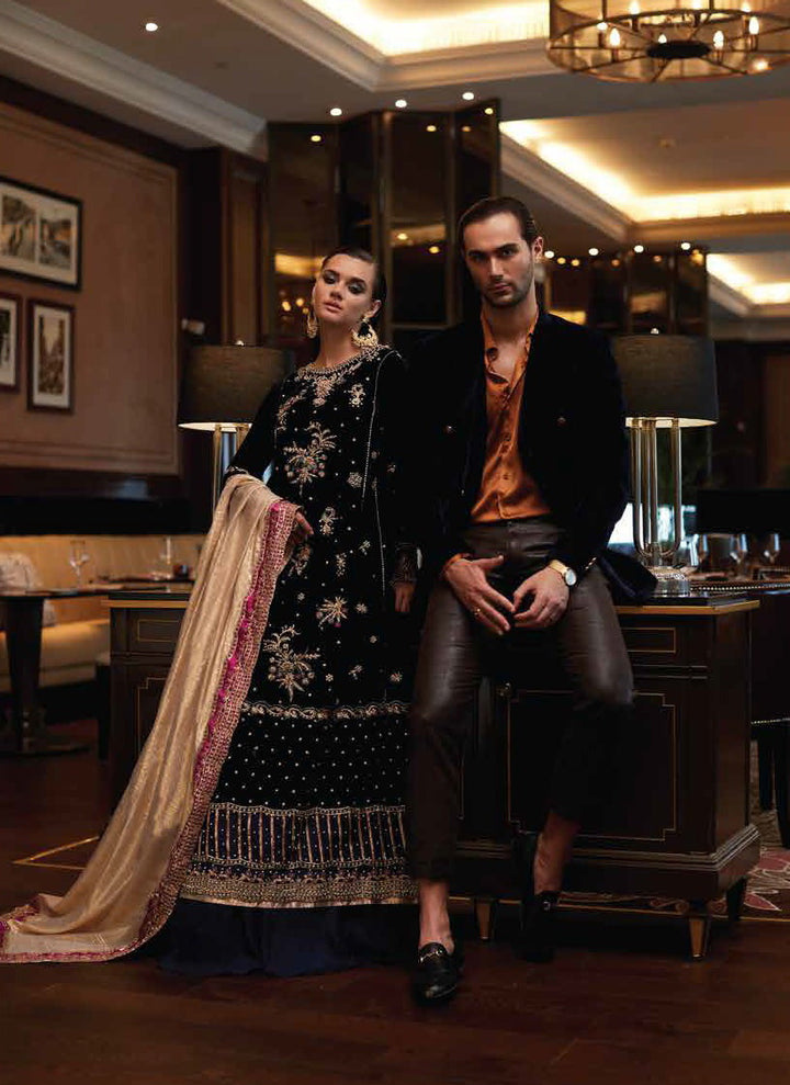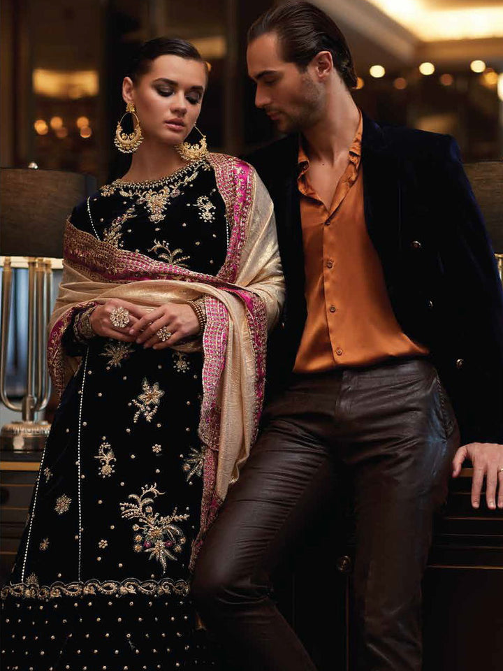 - Embroidered, Sequinned And Hand Embelished Velvet For Front Panel