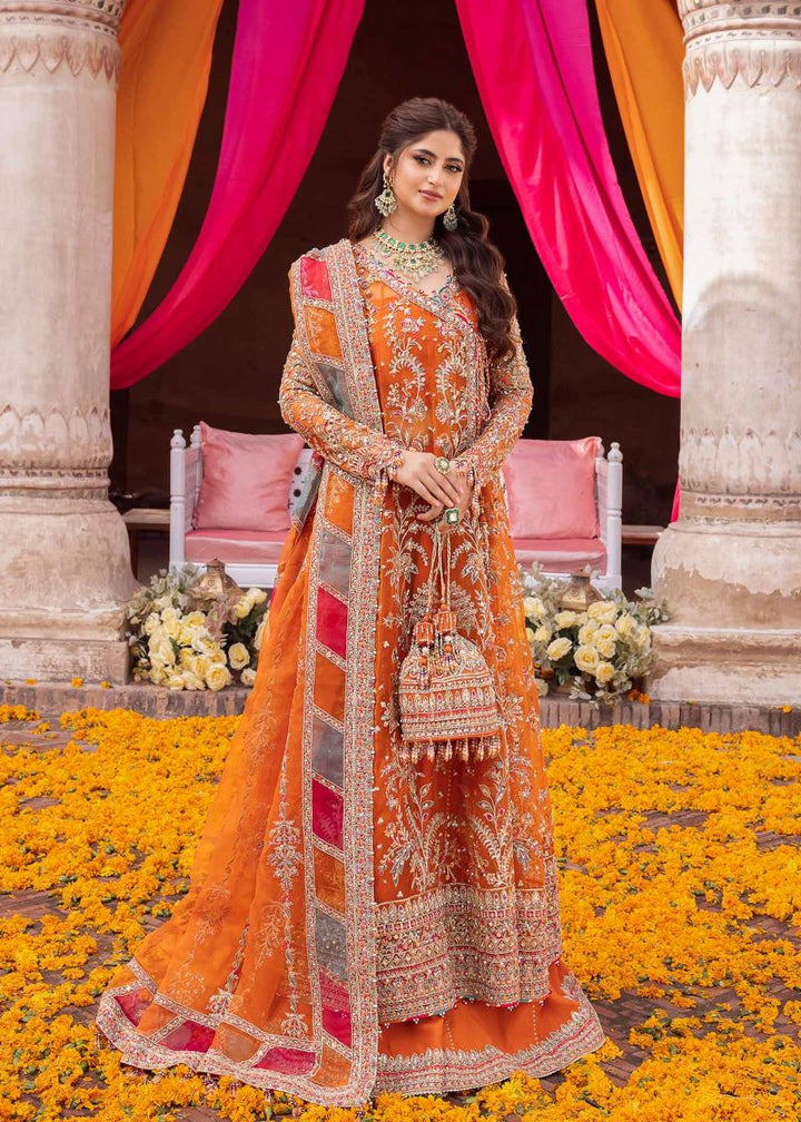 The striking panelled angrakha canvas design in tangerine fit, which vividly seeks attention. The stunning masterpiece, has embroidery and embellishments that glisten with every step. The long flowing silhouette exudes grace and elegance. This traditional outfit is paired with detailed laser work and embroidered dupatta completing the stunning outfit. Step into the spotlight and leave a trail of awestruck admirers as your flaunt this outfit. A true testament to the artistry of Mahi Collection.