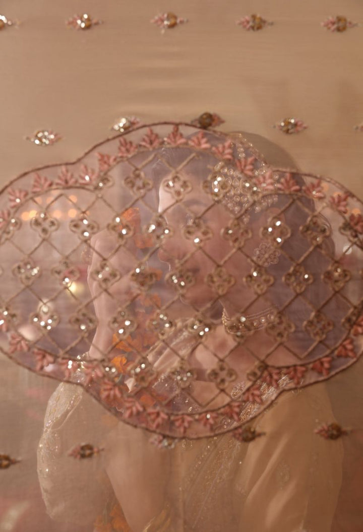 CHIFFON EMBROIDERED HAND MADE FRONT.