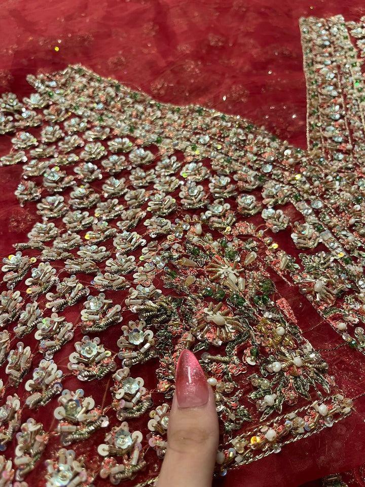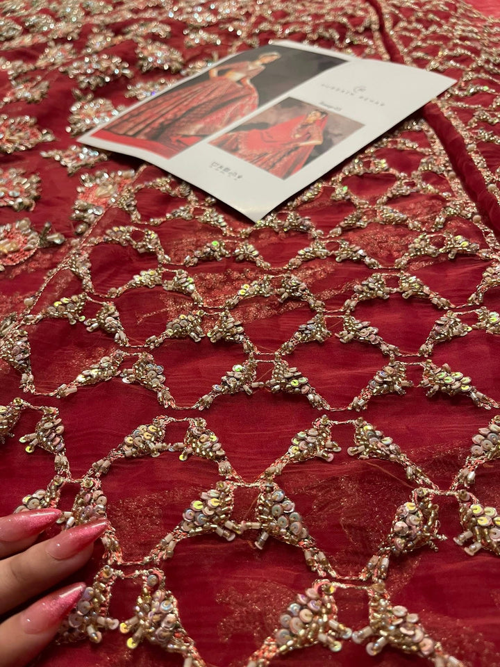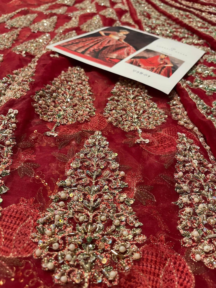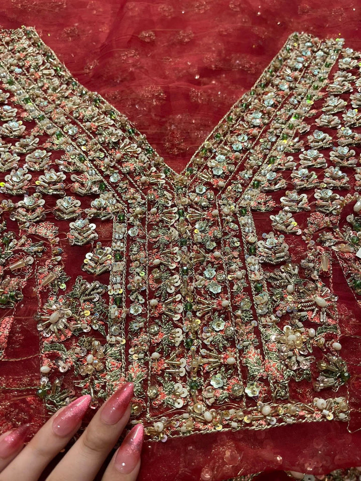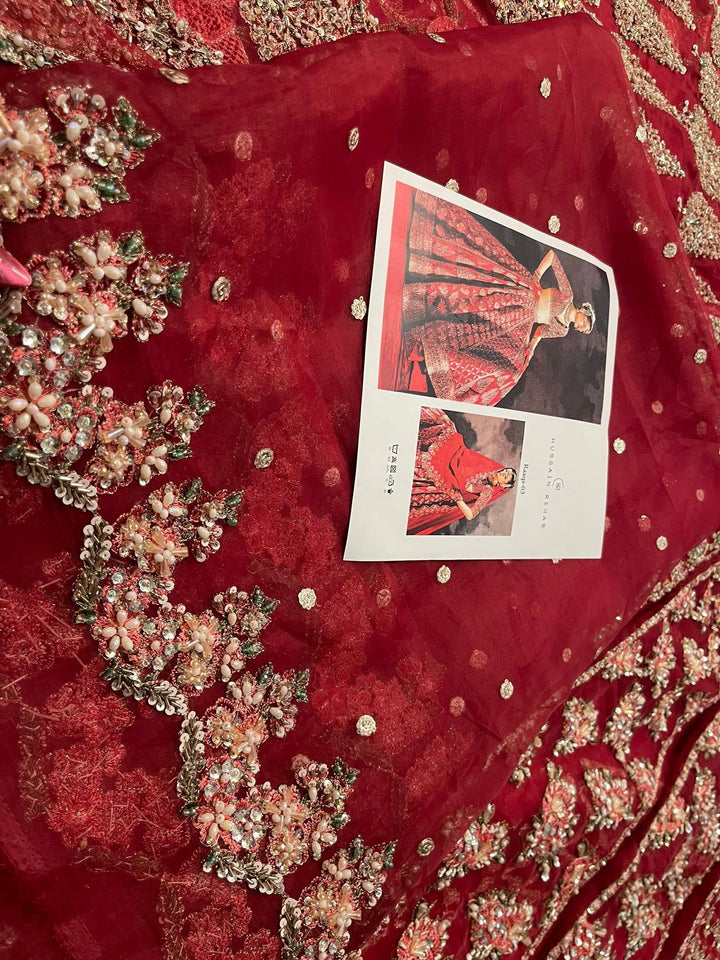 Introducing the exquisite red pure organza lehenga choli ensemble, featuring an impressive pure organza scalp cut work dupatta. This resplendent attire boasts intricate embellishments and a resplendent hue that will captivate all eyes. It adds an extra layer of elegance and sophistication to your ensemble. Each stitch is carefully crafted by skilled artisans, resulting in a stunning and unique design. The ethereal flow of the fabric and the opulent craftsmanship will make you feel like a true fashion connoisseur.