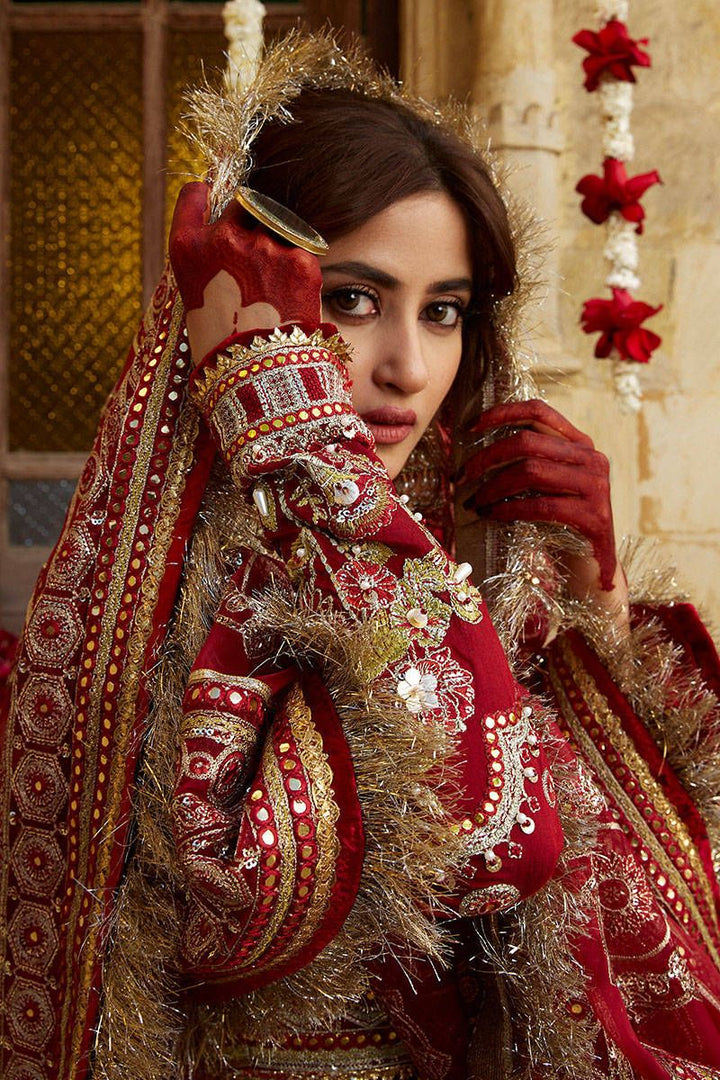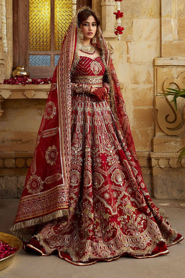 Sajjal is a vision of grace and old world charm in our signature sindoori red. A carefully curated raw silk lehnga choli that is generously embroidered in patterns of chandbalis, floral vines and geometric lines in a timeless scarlet red featuring a 16 paneled scalloped lehnga doused in lush embroideries of tilla, resham, zarri and panni further enhanced with drop pearls, gotta and stonework. Paired with a stunning embroidered and hand embellished choli, the dupatta comes with carefully placed bunches and framed with thick borders to perfect the look for a modern day woman that wants to feel like a queen.