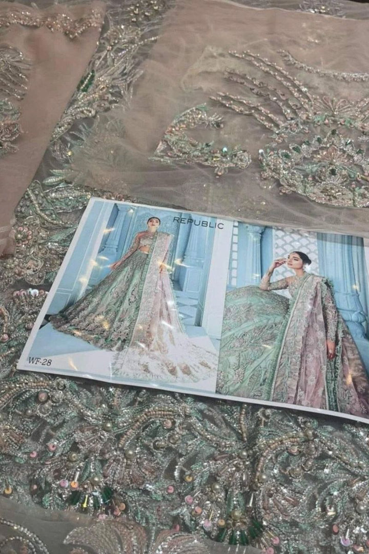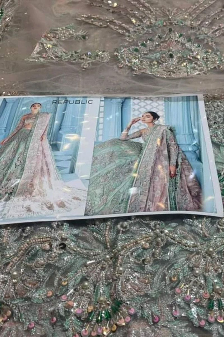 bareeze net embroidery hand made lehenga front
