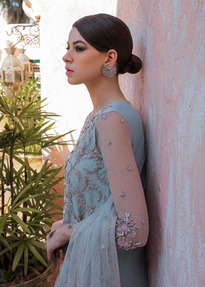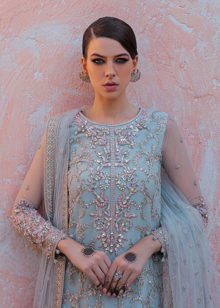 Description: Net Embroidered Hand Embellished Front 1 yard Net Embroidered Hand Embellished front&back border 65” Net Dyed Back 1 yard Net Embroidered Hand Emballished Sleeve 26” Net Embroidered Duppata 2.75 yards Net Embroidered Duppata pallu 2.5 yards Raw Silk Dyed Trouser 2.5 yards.