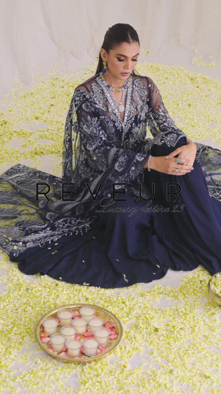Introducing our stunning Blue dress, a true piece of art in the world of fashion. This dress is crafted with intricate embroidered net and adorned with elegant hand embellishments featuring motifs, creating a look that's eye catchy and way ahead of its time. The included embroidered net dupatta perfectly complements the ensemble, adding an essential pop to the dress