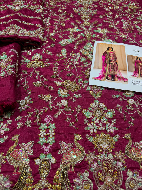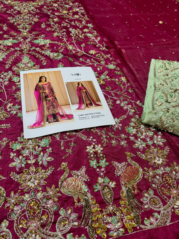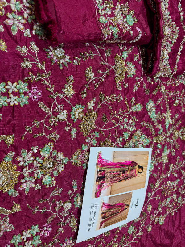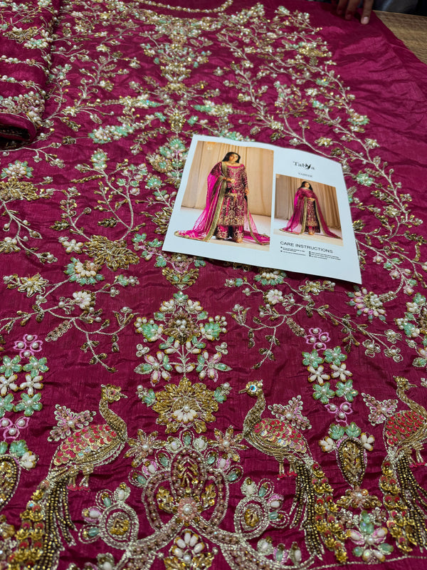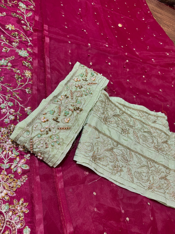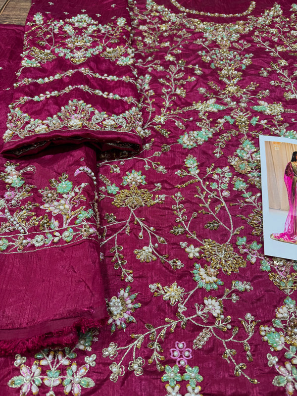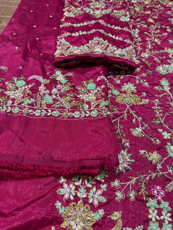 Sheesha silk with hand work shirt and trouser, dupatta organza with ?hand work