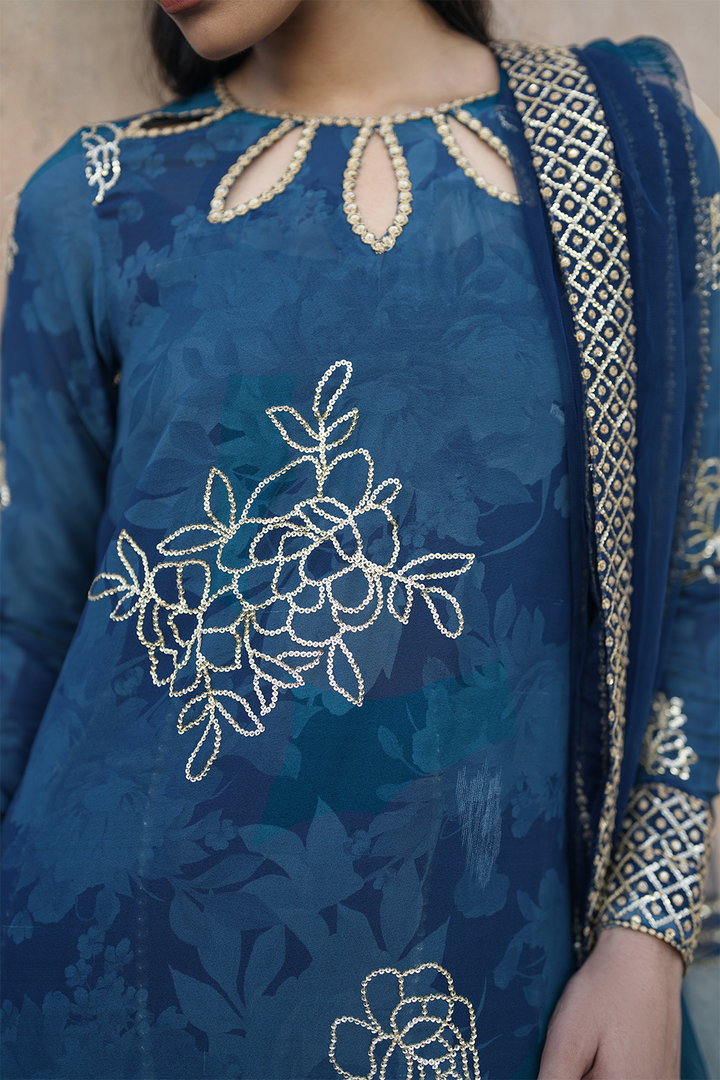Sleeves: Embroidered Printed Georgette