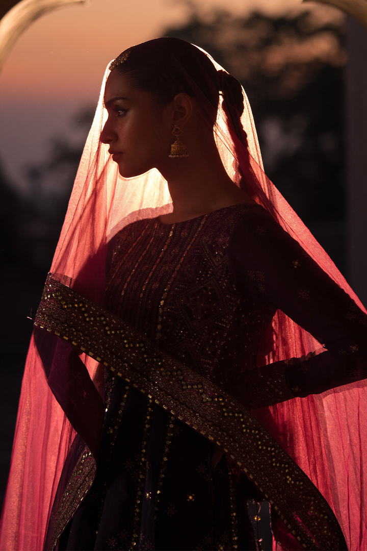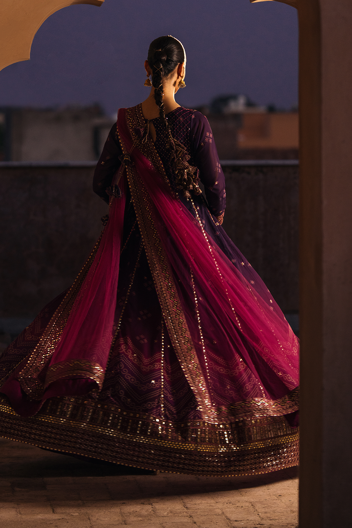 Frock Front Bodice: Embroidered Printed Chiffon With Foil Work
