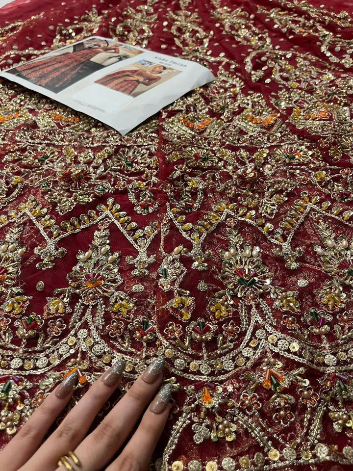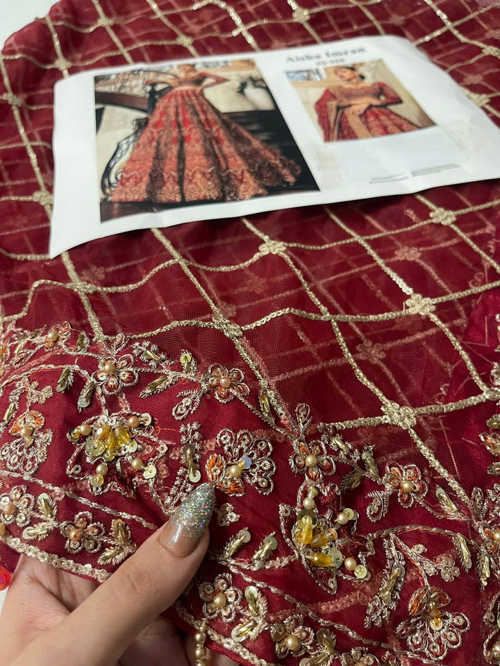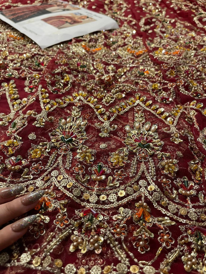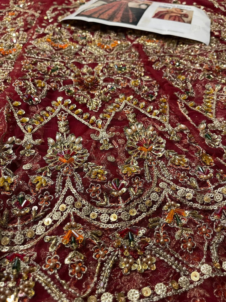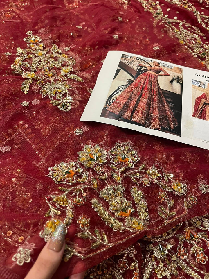 Uroos-e-Khas A vision of opulence and grace, this masterpiece celebrates the grandeur of timeless bridal heritage. Rich crimson tones meet intricate hand-embellished artistry, woven with shimmering embellishments to create a silhouette that whispers of royal charm. Each detail tells a story of elegance, designed for the bride who wishes to embody both tradition and allure on her most special day.