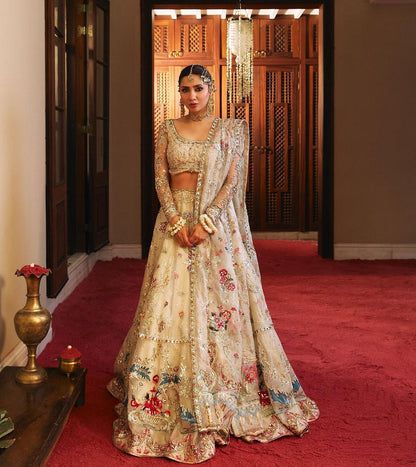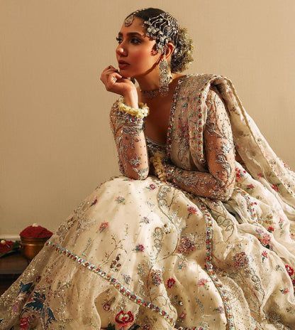 This collection is dedicated to the hands that masterfully turn threads to help us create our opulent fantasies. Silver and gold strands intertwine on fabric harkening the sun and the moon. Sunehri noor, Rupehri noor adorning the Rano woman by turns.