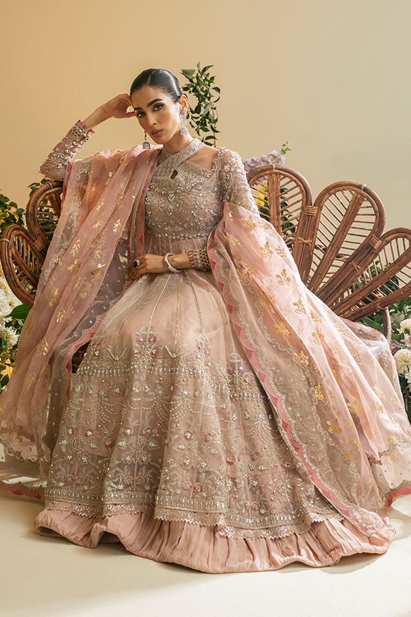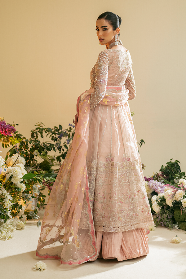 - Zunia is a lavishly curated lavender ensemble that exudes refined elegance. The organza shirt with beautiful harmonized needlework, paired flawlessly with crushed trousers in raw silk, showcases meticulous craftsmanship adorned with pearls, dabka, kiran, tilla, and exquisite threadwork. Elevate your formal aesthetic with the ethereal allure of Zunia, where breathtaking embroidery meets the richness of lavender tones, guaranteeing you a standout presence on your most treasured occasions.